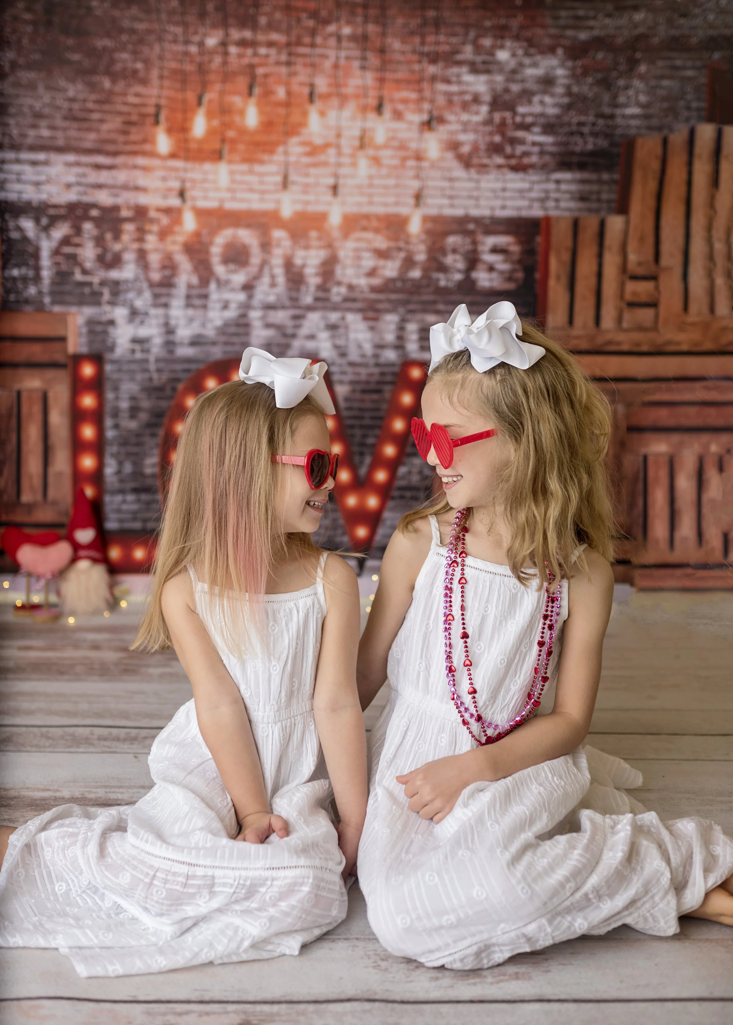 I'm so excited about these LOVE Valentine Minis photos, with a rustic Love/brick style backdrop, fun valentines props (glasses, roses, beads, etc) kids will look adorable in their Valentine’s styled clothes.